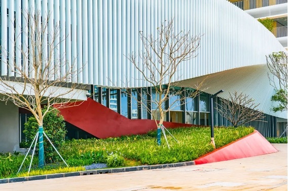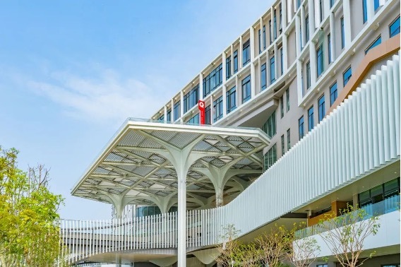 遮阳构件——用钢筋混凝土、铝合金等材料做成永久性或者活动可调节性遮阳构件,像给教学楼戴上了“遮阳帽”和“防晒帘”。既延续了岭南建筑的立面韵律,又显著降低夏季阳光直射带来的热负荷。