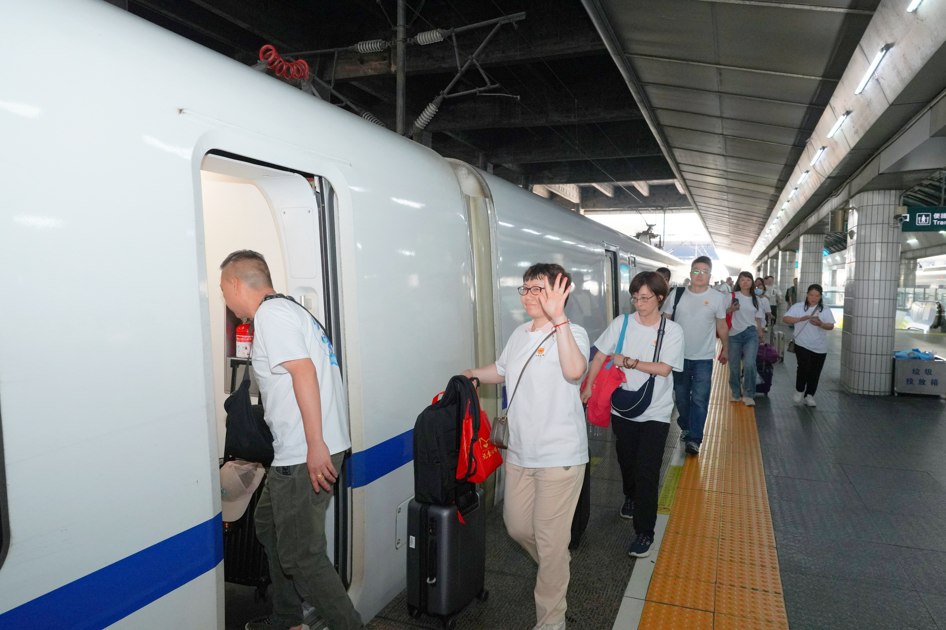 5月19日上午,伴随着一声清脆的鸣笛,2025年首趟优秀技术工人和先进职工赴福建龙岩疗休养专列从广州东站准时发车。