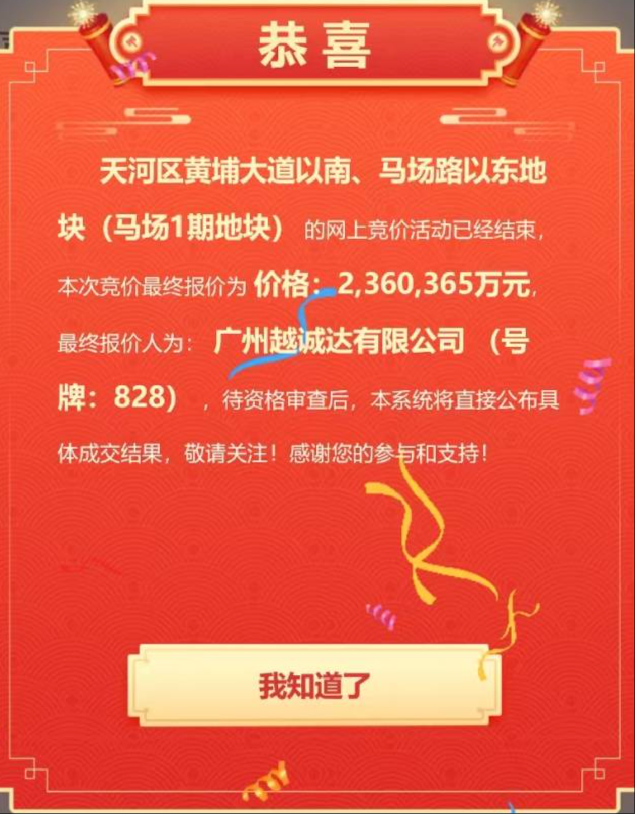 总价超236亿元、楼面价8.5万/平!越秀集团拿下广州马场地块