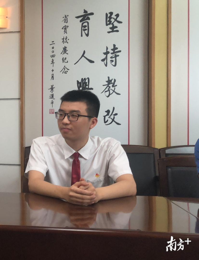 华南师范大学附属中学高三5班的杜思敬是今年广东高考理科前20名的高分考生。面对南方日报记者,他显得比较从容,觉得自己发挥正常。