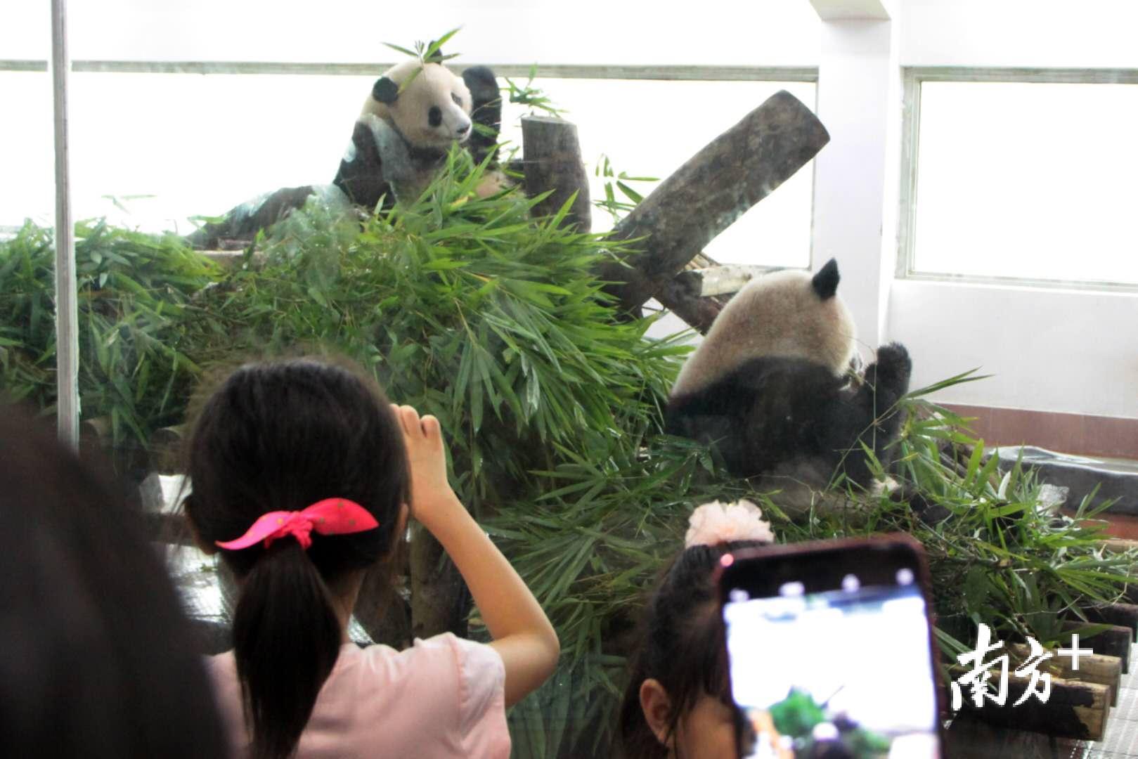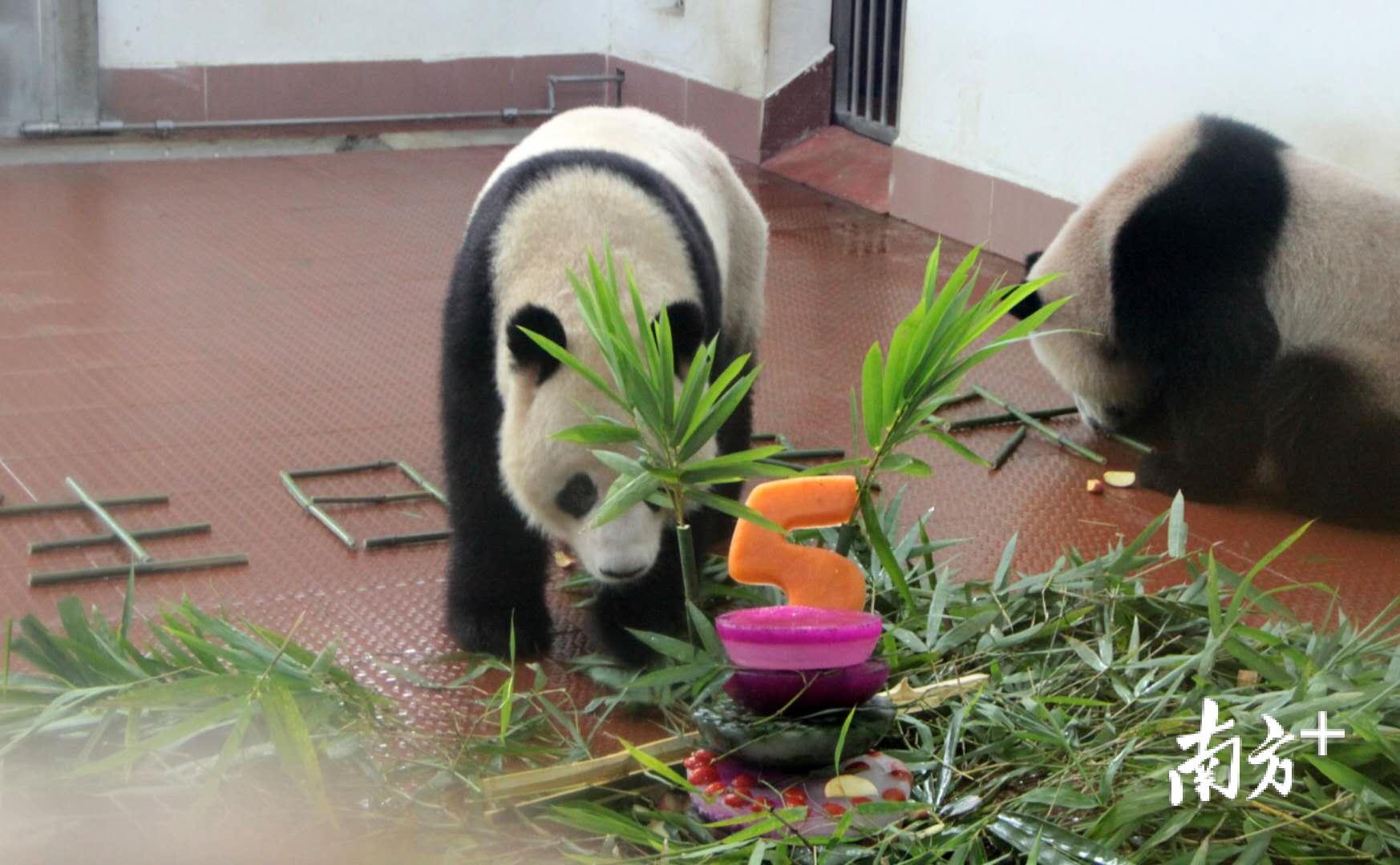 野外大熊猫的寿命一般为18—20岁,圈养状态下可超过30岁,5岁的大熊猫迈入成年。8月23日、27日分别是居住在广州动物园熊猫馆的“星一”“雅一”5周岁的生日,为庆祝“星一”“雅一”成年,8月23日广州动物园为它们“大摆宴席”,精心准备了生日party。网络报名的15对亲子家庭、园方工作人员和现场游客一起为“星一”“雅一”送上祝福。