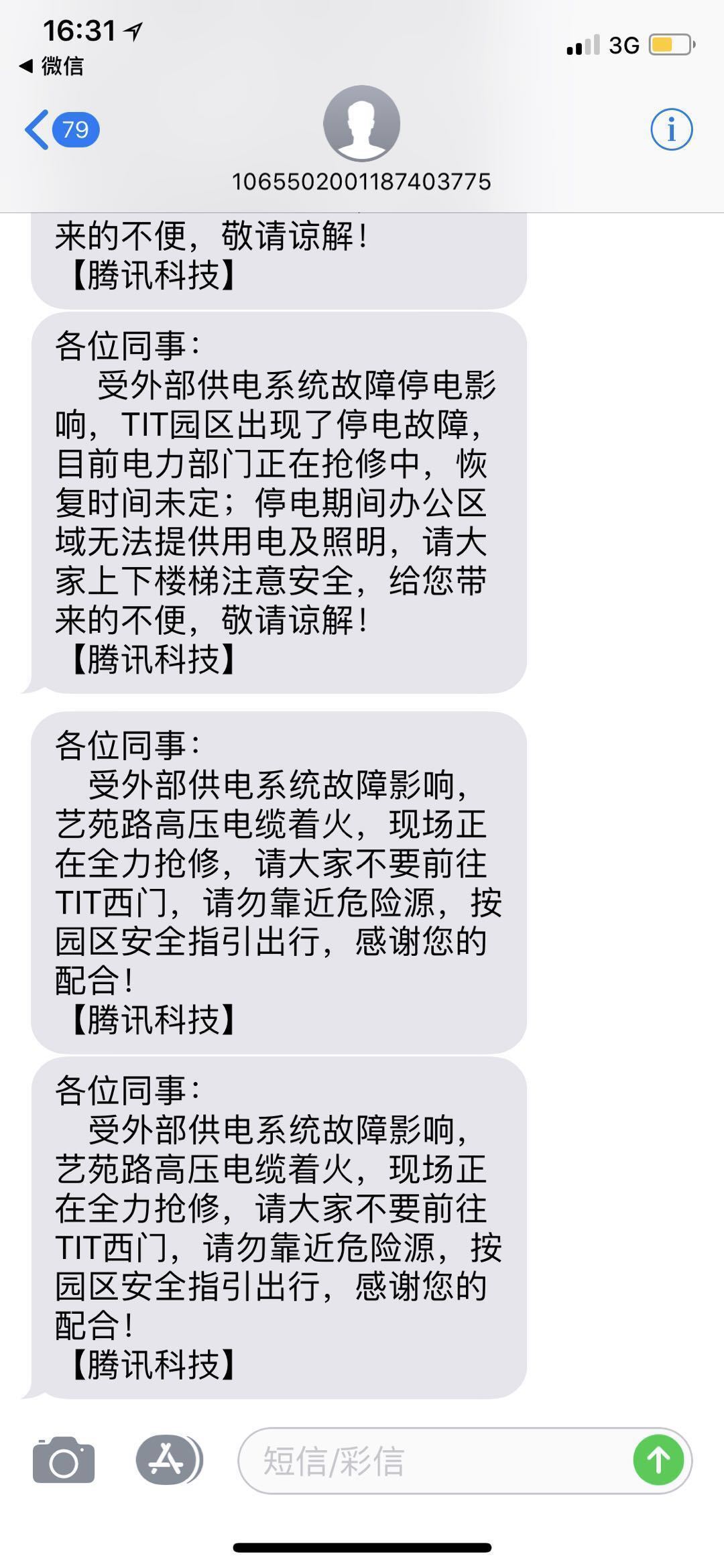 “尊敬的客户:由于赤岗站出线电缆故障,我局临时于2018-09-03 16:00至2018-09-03 18:00对赤岗XXX所在的电力线路进行故障维修,届时可能影响您的正常用电,给您造成不便敬请谅解,感谢您对我们工作的支持!-广州供电局。”今天下午16:00点前后,不少住在赤岗附近的居民收到了这条消息。在艺苑路附近还可以看到明显的供电设施冒出的黑烟。