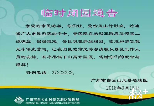 【部分商场停业】 天河城集团发出公告,天河城集团属下管理项目广州天河城、仰忠汇、动漫新城、天河城百货各门店自2018年9月16日起暂停营业,具体营业时间另行通知;建议广东永旺响应《广州市防台风全民动员令》调整营业时间,确保人员、财产安全。台风天气请广大员工减少外出,确保人生安全。