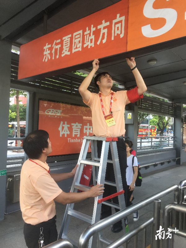 公交站场中心提前安排维修班人员,做好广州南站公交站场营运线路指引牌加固,维修班人员顶着烈日,赶在恶劣天气来临前完成加固任务。BRT公司加强对站台应急物资、排水口、设备设施隐患排查,严格落实各项防御措施。