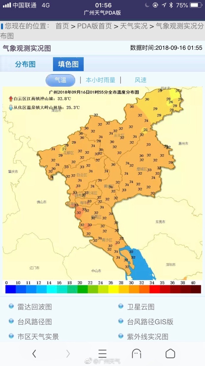 受台风“山竹”带来的周边下沉高压影响,今夜广州全市大部分地区的气温还在31~33°C之间。