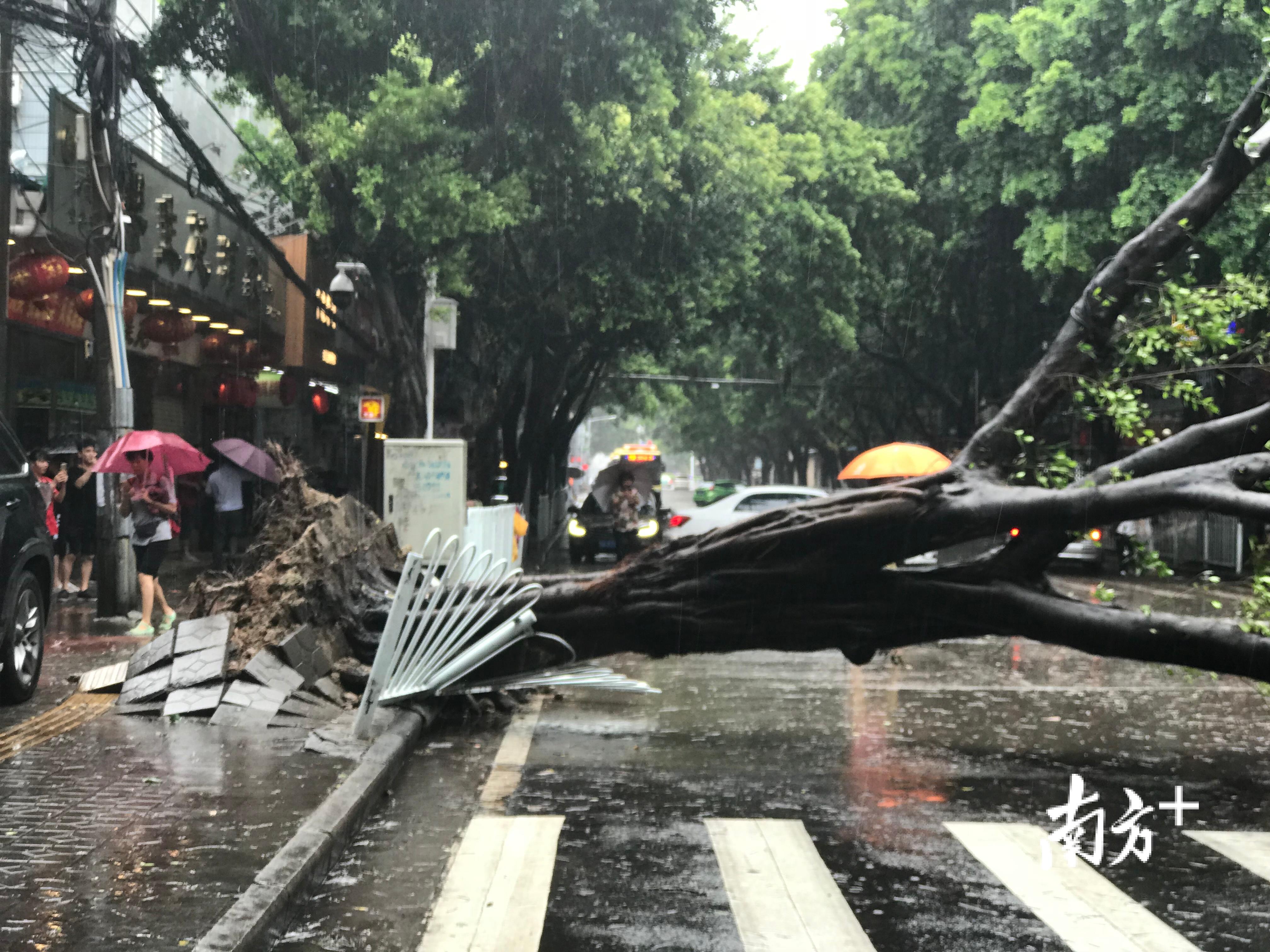 16日下午13时许,台风“山竹”已经开始在广州市区造成破坏。