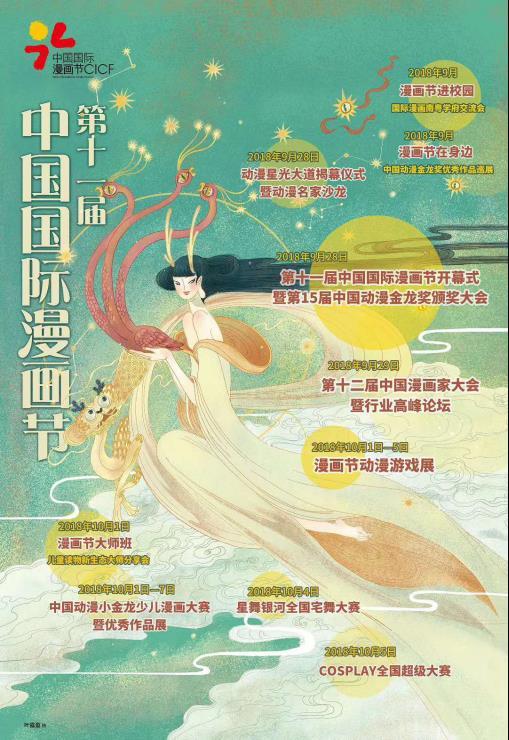 作为国内首个构建了节、奖、展、峰会四位一体的国字号漫画节,中国国际漫画节为时五天的CICF动漫游戏展最为动漫粉丝们喜爱。据了解,本年度的CICF动漫游戏展将于10月1日至5日在广州琶洲保利世贸博览中心举行,首次开放5个展馆,展览面积6.5万平方米,将引进AGF玩出名堂游戏博览会,展会将举办“金龙奖COSPLAY全国大赛”“星舞银河全国宅舞大赛”“电竞大赛”“名家签名会”等近100项动漫游戏活动,参展的海内外动漫游戏厂商有300多家,包括腾讯互娱、腾讯视频、网易游戏等。而为庆祝中日和平友好条约缔结40周年首设的日本馆,则吸引了日本东贩、ANIPLEX、BANDAI NAMCO Arts等多家日本知名企业参展。此外还将在广州图书馆、广州购书中心、动漫星城等地设立分会场。