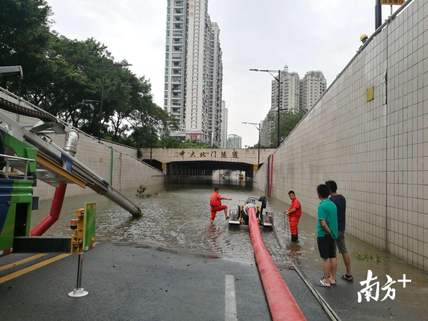 16日晚上十一点左右,海珠区水务抢险人员到达中大北门隧道进行抢险作业,直至17日中午12时左右完成约11000方水抽排工作,中大北门隧道恢复通车。