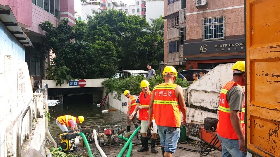 广州市防汛机动抢险队数据显示,截至9月17日16:00,共出动轻舟队员20名,水利设施抢险人员86名,内涝排水人员72名。共排空车库4个,约抽排积水24000方;共处理城市马路内涝积水11处,27次;垒沙包2372个。从16日7时开始,内涝排水人员已经连续作战33个小时,好景花园车库积水还在抽排中。