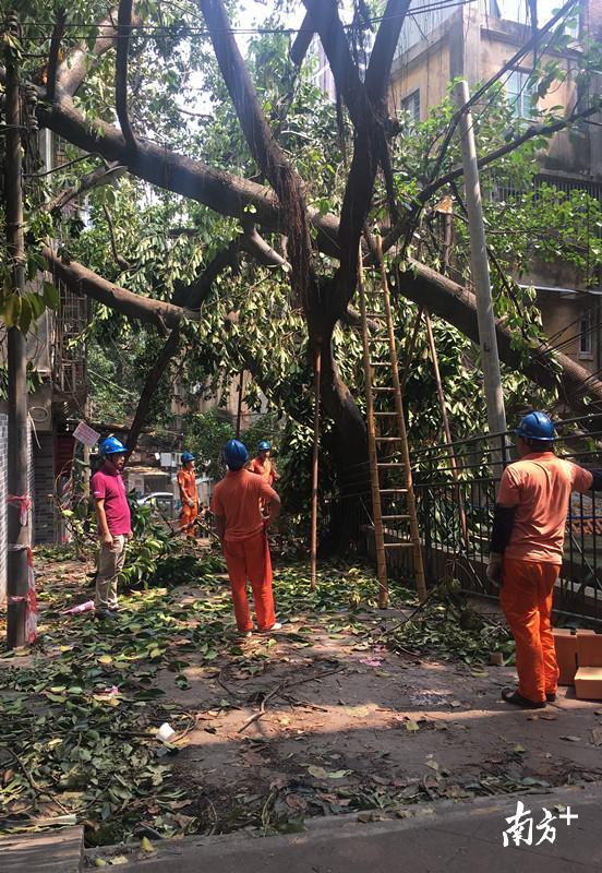 从9月15日的凌晨两点多开始绿化抢险,一直到9月17日晚上,广州市绿化抢险队队员持续工作了50多个小时。