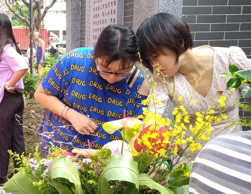 来自玉白兰艺术队的梁阿姨和队友第一次参加插花比赛就得了二等奖。“我们第一次参加,以前没有学过。”她说,社区经常组织各种文化活动,很高兴能参加这次插花比赛,过节图个热热闹闹。