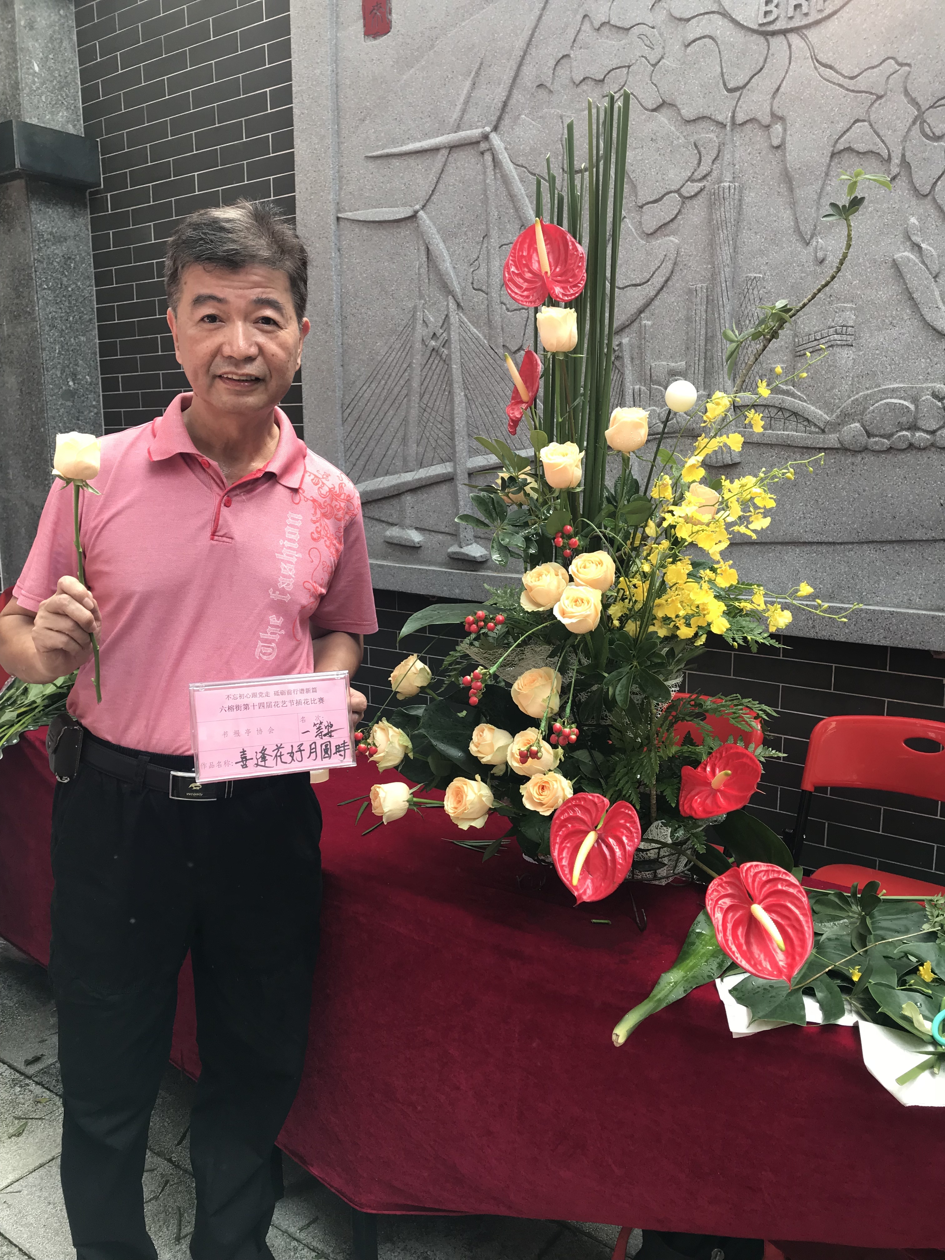 退休老伯夺得插花比赛一等奖