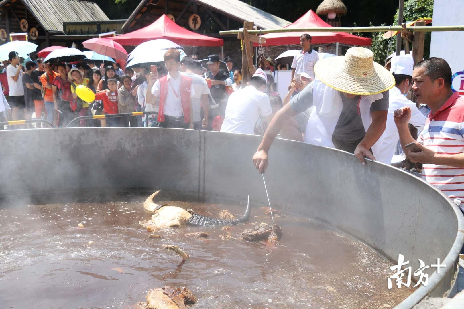 二、现场古法烹牛。吕田头酒文化节活动期间,在广场的显著位置将摆放一口直径3米的巨锅,现场烹煮一千多斤的牛,牛肉可以让游客免费领取品味,我有故事和酒,还有牛肉,你愿意来参加我们的吕田头酒文化节吗?