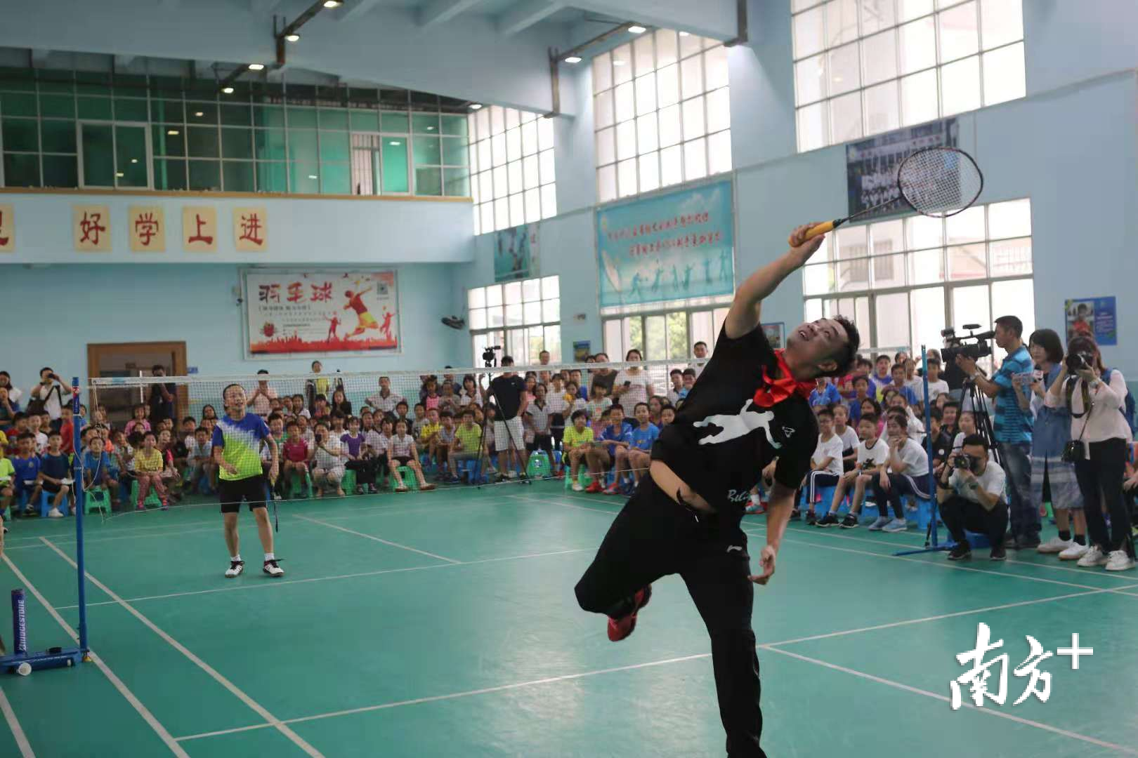 交流环节结束后,活动现场还举行了小学生的双打比赛,在结束后郑波专门为几名双打队员指点。“接球时要有合理的站姿,双打时两人需要有更明确的分工和日积月累的默契,同时还要有一定的战术意识。”郑波的指导也让现场孩子们对羽毛球有了更深刻的理解。