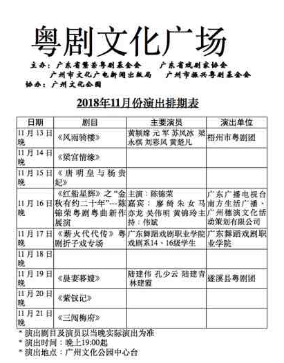 11月的粤剧文化广场明晚(13日)开唱,粤剧迷们千万不要错过了。