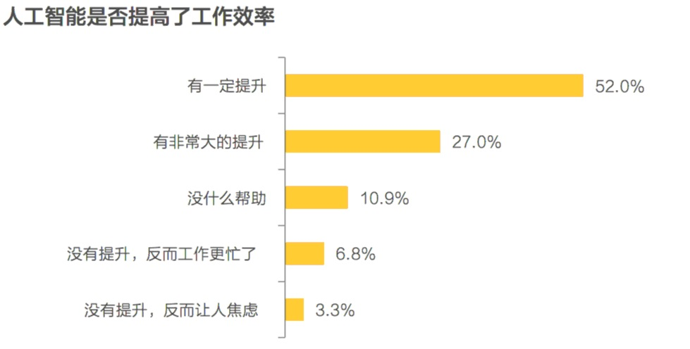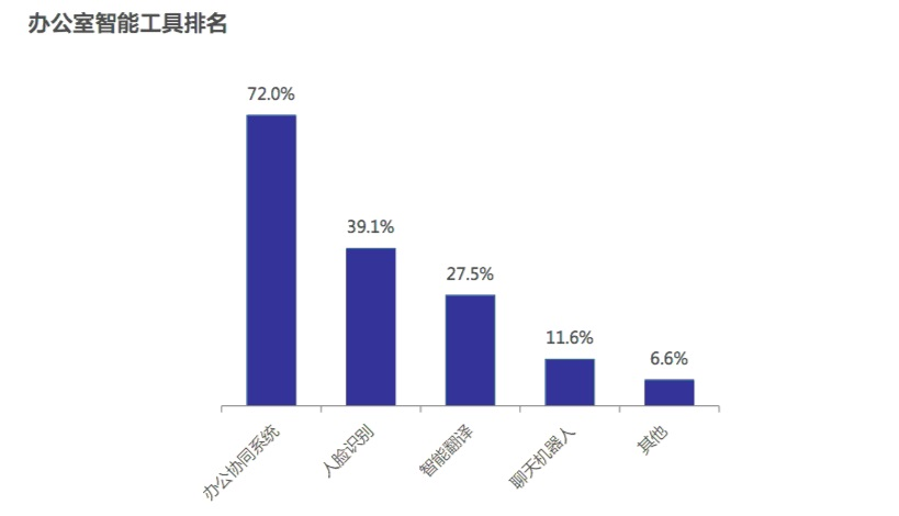 调研数据显示,79%的员工表示人工智能提升了工作效率,其中最常使用的智能化工具是“办公协同系统”,使用过的员工高达72%。