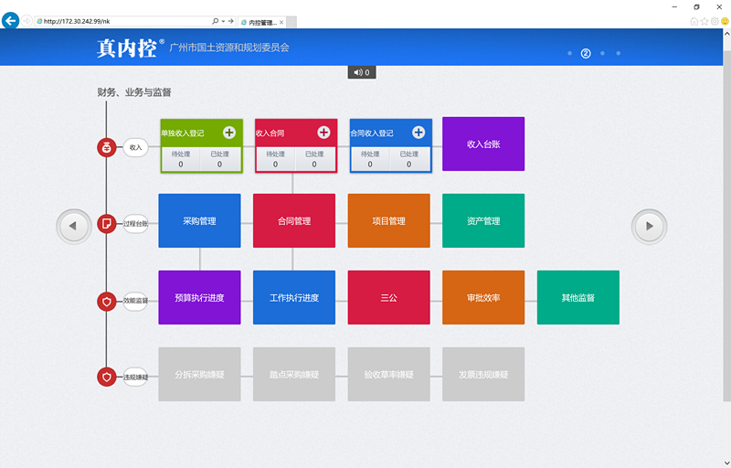 “内控体系也有自身的缺点和漏洞,不可能防范住所有风险。”彭高峰表示,接下来广州市国规委还将继续对标中央、省市关于全面绩效管理要求,扩建现有管理模块拓展、电子签章和资金内控移动端APP,推进委系统内控集中监管平台在国土规划体系开花结果,实现资金管理规范、透明、动态的科学控制,探索出一条具有国土资源和规划特色的廉政风险防控新路径。