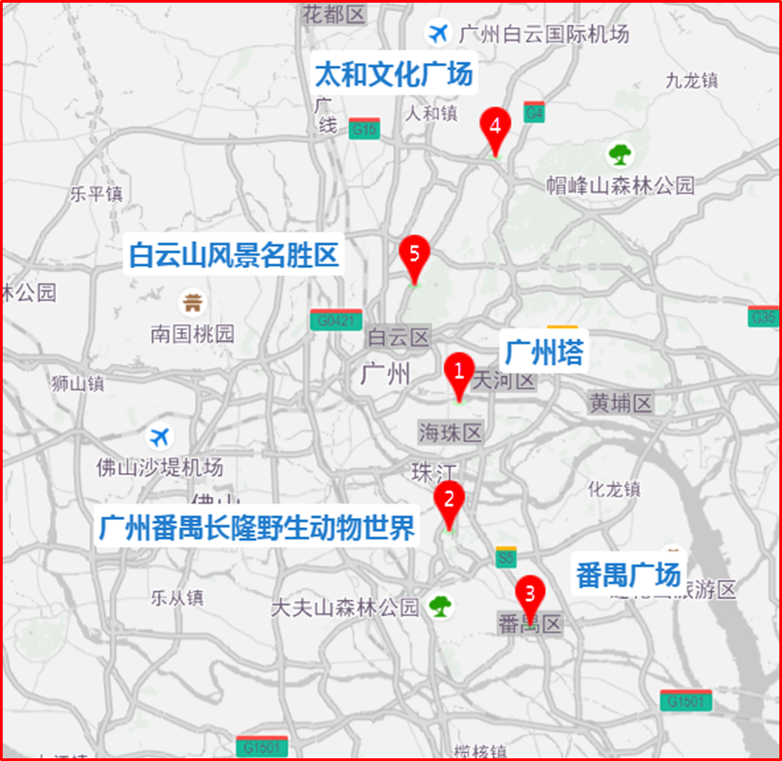 广州市区热门景点:预计节日期间广州塔最受欢迎,其次是广州番禺长隆野生动物世界、番禺广场、太和文化广场、白云山风景名胜区。
