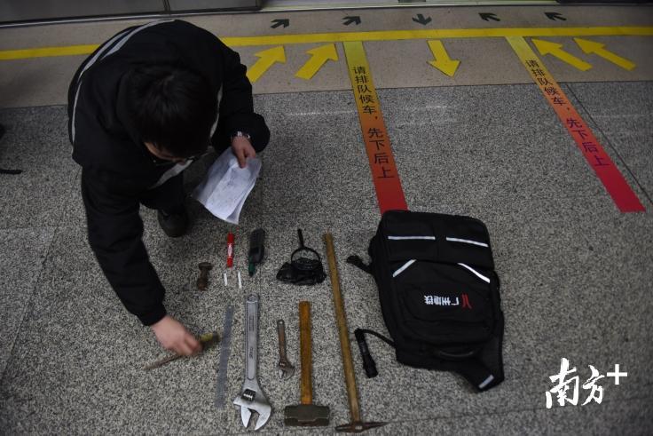 登记好今晚作业点后,他径直走向会议室,取下近二三十斤的工具包清点工具,以确保每个工具都可以正常使用。列检锤、六磅锤、450活动扳手、200活动扳手、手持台……这些就是他今晚巡检蕉门至黄阁汽车城上行区间线路设备所需要使用的工具。平时下轨道的作业时间是凌晨的1:20-4:00,要是遇上像春节这样的节假日各线路延迟收车,下轨道作业的时间也将推迟,作业时间会大大缩短,作业会更紧张,巡检线路的压力也将更大。