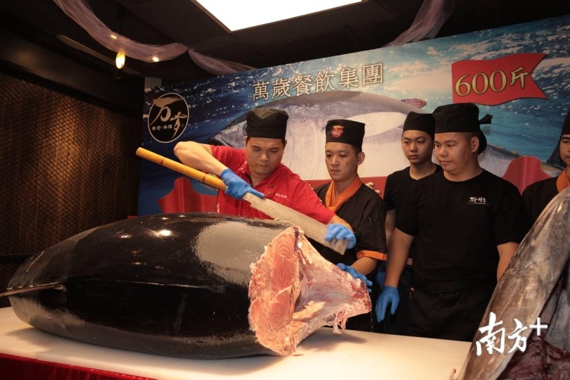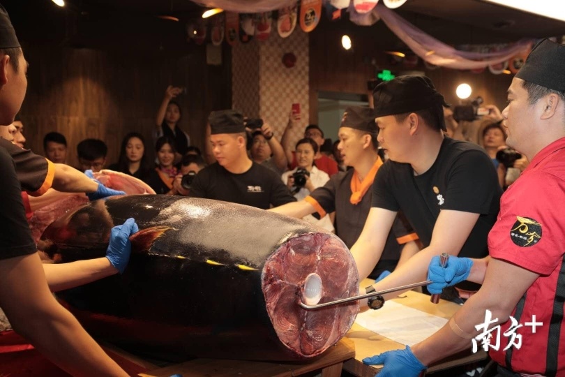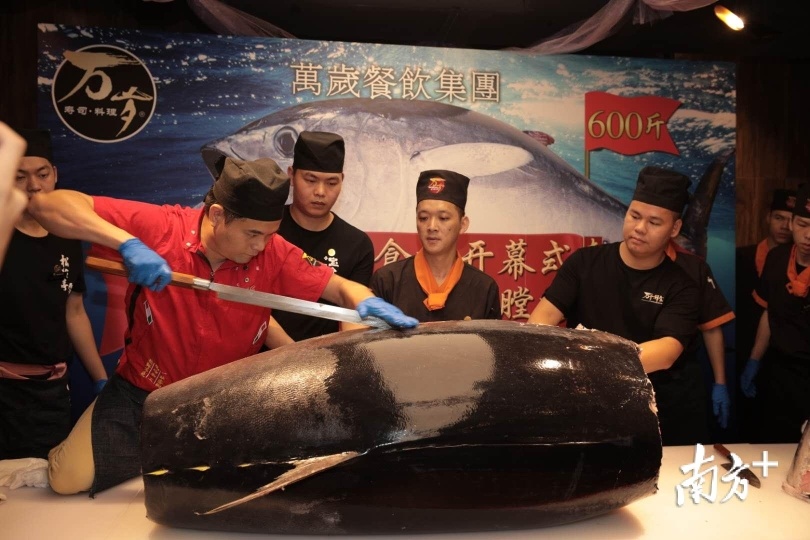 石塚英树表示,在广州,各色日本料理店颇具人气,日本料理也是广州人最常品尝的异国美食之一。本次广州亚洲美食节,日本驻穗总领馆也会负责日本主宾国的活动。本次600斤金枪鱼开膛秀,就是主宾国活动的暖场活动。