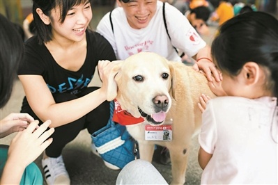 “其实像拉布拉多这类大型犬,因为颜值和体形方面的不同,在探访老人活动时会有点儿受冷落,比如说颜值上不够萌,体形太大还不能让受访者随便抱等等。不过它们俩往往在特殊儿童人群中会比较受欢迎。因为大型犬稳重,能给特殊儿童更多的安全感。”