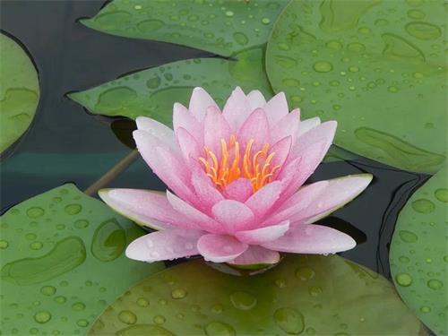 这朵莲花属荷花类中的杏粉,源自热带雨林,经莲花山旅游区科技人员改良,成了现在的品种。