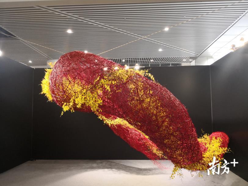 来自广州的花艺设计师黄仔就是其中的佼佼者,刚在今年8月世界花艺大赛获得亚军,黄仔展出的作品《锦绣河山》,主体是手工编织的孟忠竹,形如欢舞的红绸,象征祖国万里河山。黄仔选择了黄色的跳舞兰缀入竹子间,绽放的群花灵动而颜色跳脱,令观赏者印象深刻。