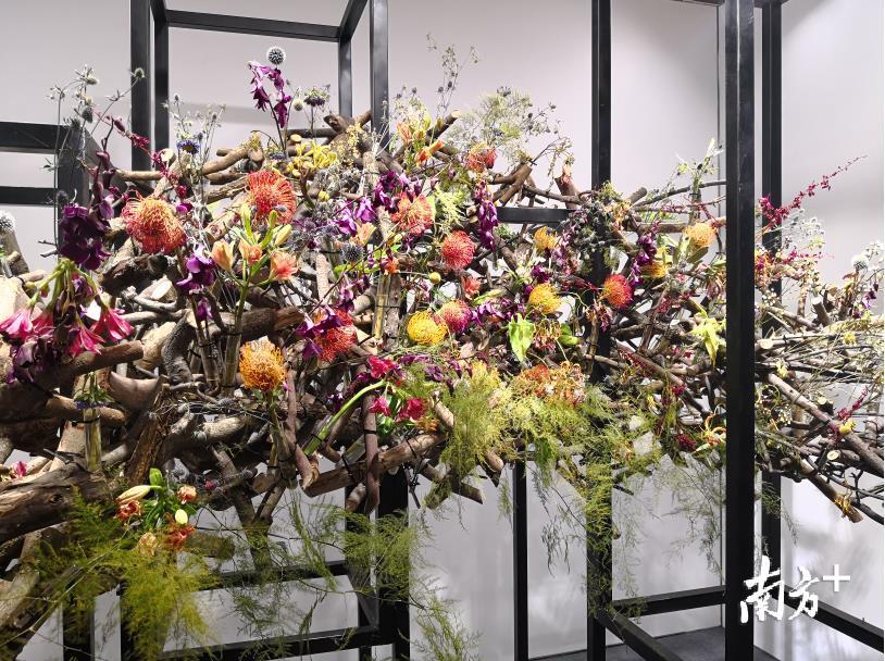 此外,香港、澳门花艺师参展的18件作品则展现了湾区文化同根同源,艺术审美互相交融的一面。现场“圈粉”了不少市民游客,他们纷纷举起相机拍照留念。