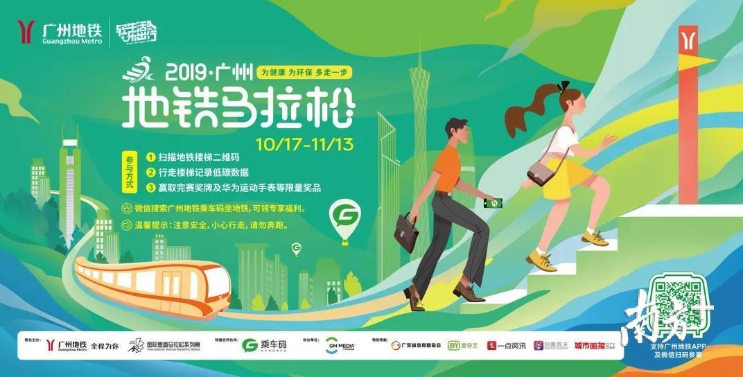 广州地铁将于2019年10月17日在各地铁站出入口楼梯公布参赛二维码,手机扫描即刻可参赛。参加者将有机会获得2000枚独一无二的完赛纪念奖牌!