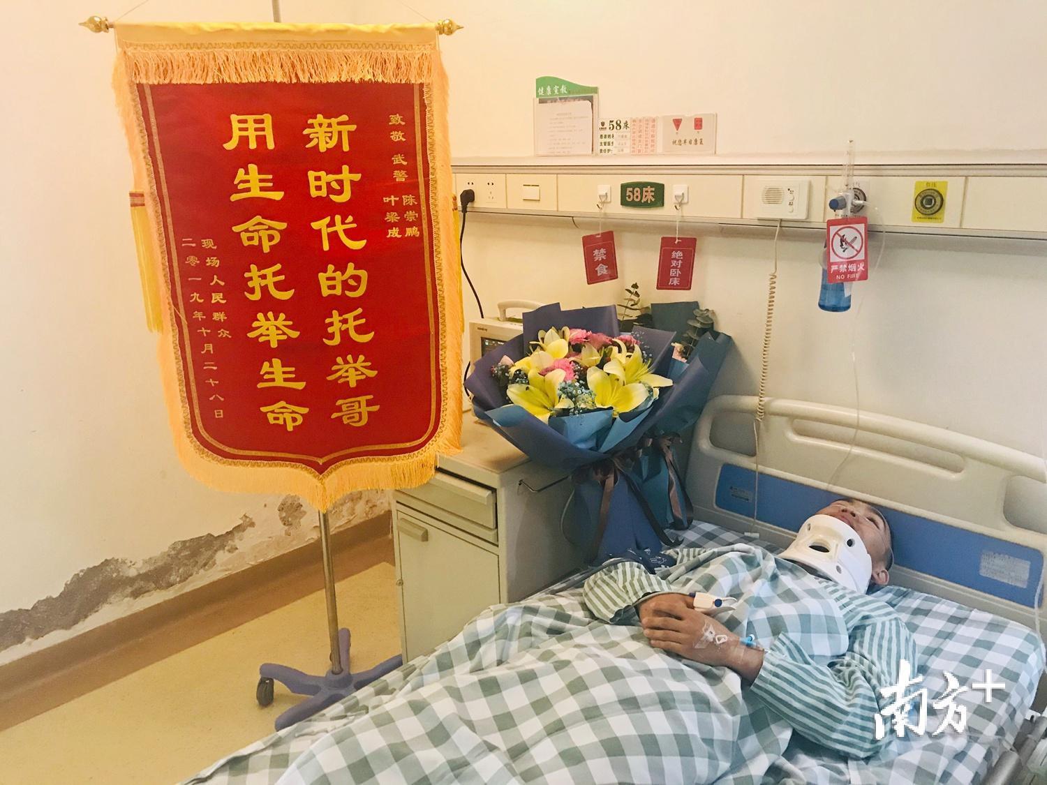 叶梁成:现在嘴唇有水肿,脖子也很难受,右腿膝盖压到了,不太舒服。让我很感动的是,我的战友们一直在我身旁,昨天指导员也陪了我一个晚上。