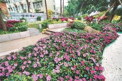 法政路口袋公园。公园位于法政路和越秀北路交界处,绿树挺立,繁花似锦。