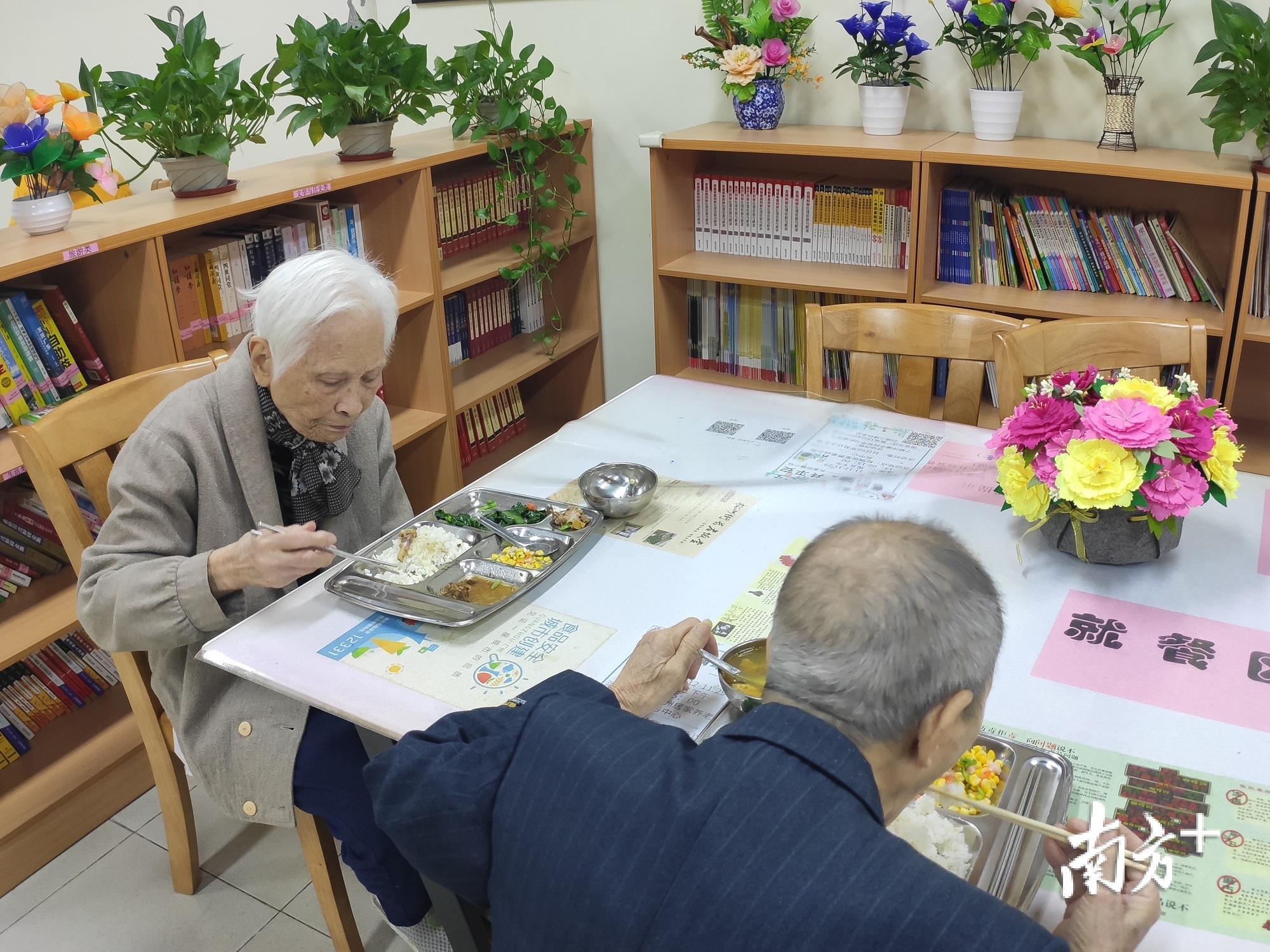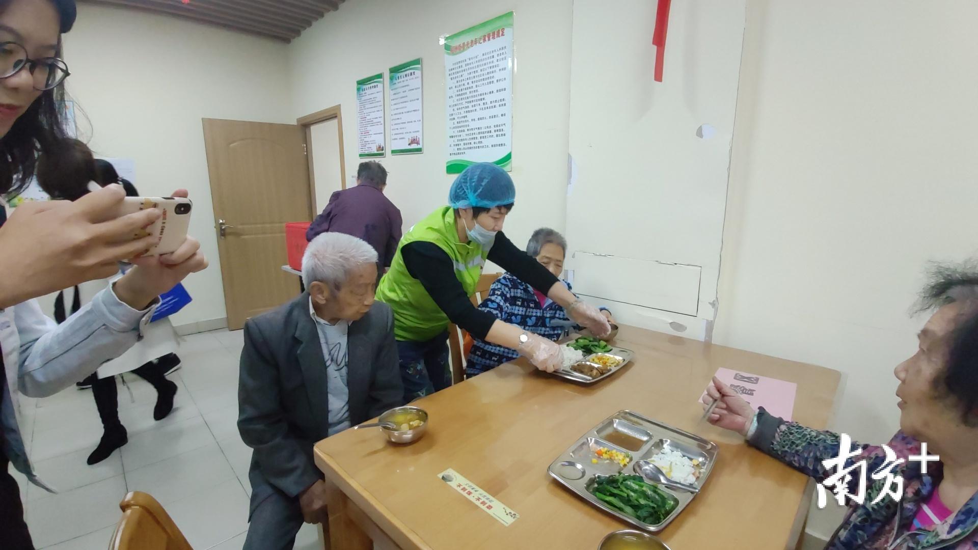 “吃了一年了,很放心。饭菜卫生可口,我们退休老人非常喜欢。”刘奶奶对所在小区富力半岛的长者饭堂赞不绝口。11月19日中午,记者走进松洲街居家养老综合服务中心,老人们正在其乐融融地吃着午饭,三杯鸭、玉米炒午餐肉、菜心、虫草花鸡汤,三菜一汤最少只要5元钱。据相关负责人介绍,为了满足不同老年人的需求,长者饭堂计划推出晚餐以及煲仔菜等更丰富的选择。