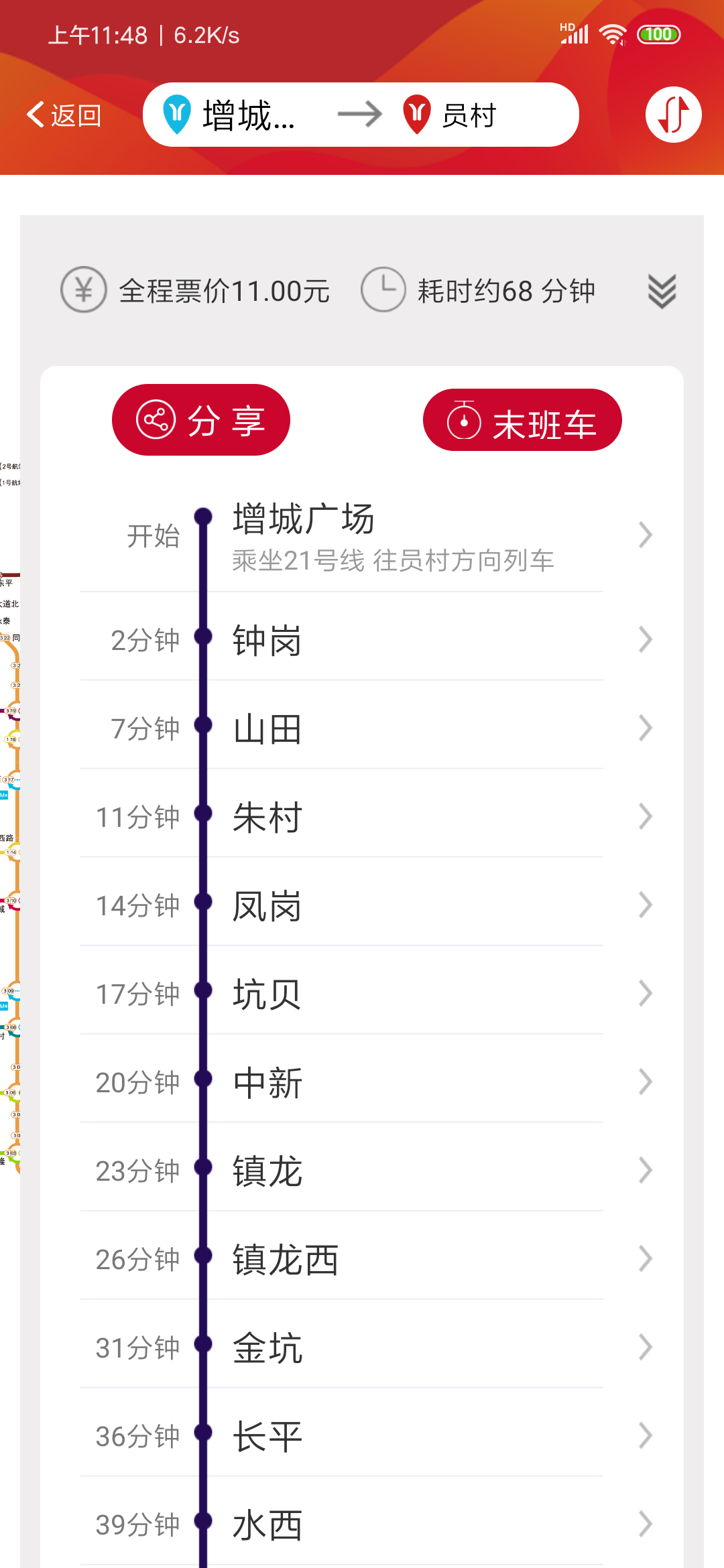 广州地铁APP显示,从增城广场站到员村站慢车全程68分钟,票价11元。快车的间隔是30分钟一班 ,全程所需时间目前还无法查询。其实,就在几天前,地铁21号线(员村-镇龙西)试运营基本条件评审会举行,来自全国各地的专家对线路进行评审。最终,21号线顺利通过第三方机构评审,取得试运营的条件。