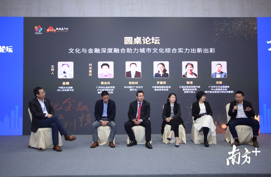 中国文化金融50人论坛秘书长金巍主持“文化与金融深度融合,助力城市文化综合实力出新出彩”的圆桌论坛,广州市社科院金融所副所长蔡进兵、华兴银行广州分行副行长张松林、中银粤财股权投资基金投资总监罗蔓莉、江海证券投资银行部董事副总经理、保荐代表人黎滢、广州市文化金融服务中心投融资总监洪源等不同领域专家和代表各抒己见,政府、银行、券商、基金如何推动金融与文化的融合,提升城市文化综合实力。