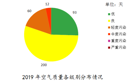 2019年,广州市优良天数为293天,占比80.3%,其中优天数为93天,二级良天数为200天;连续两年消除重度污染及严重污染。2019年,广州市PM2.5仅超标3天,较2018年减少16天,较2013年减少76天。