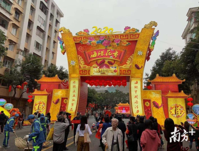 花市牌楼依然是迎春花市的重头戏。荔湾花市主牌楼融合了红柱、画梁等西关建筑元素,白云花市牌楼设计以中国传统的大红灯笼为主题造型,黄埔花市主牌楼借港珠澳大桥的九洲航道桥主塔“风帆”的主体造型凸显“扬帆启航”的地标韵味……结合广州各区特色的牌楼,展现了岭南文化底蕴和鼠年民俗特色。