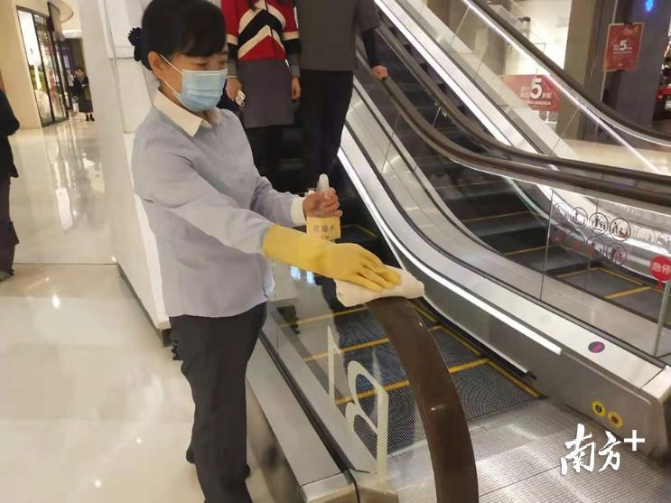 其中,广州天环ParcCentral、正佳广场、万菱汇等大型商场均表示,商场工作人员每日定时定点开展全方位消毒清洗,包括商场围栏、门把手、电梯间按键、洗手间、母婴室以及商场前台等顾客可触碰、人流密集区域。
