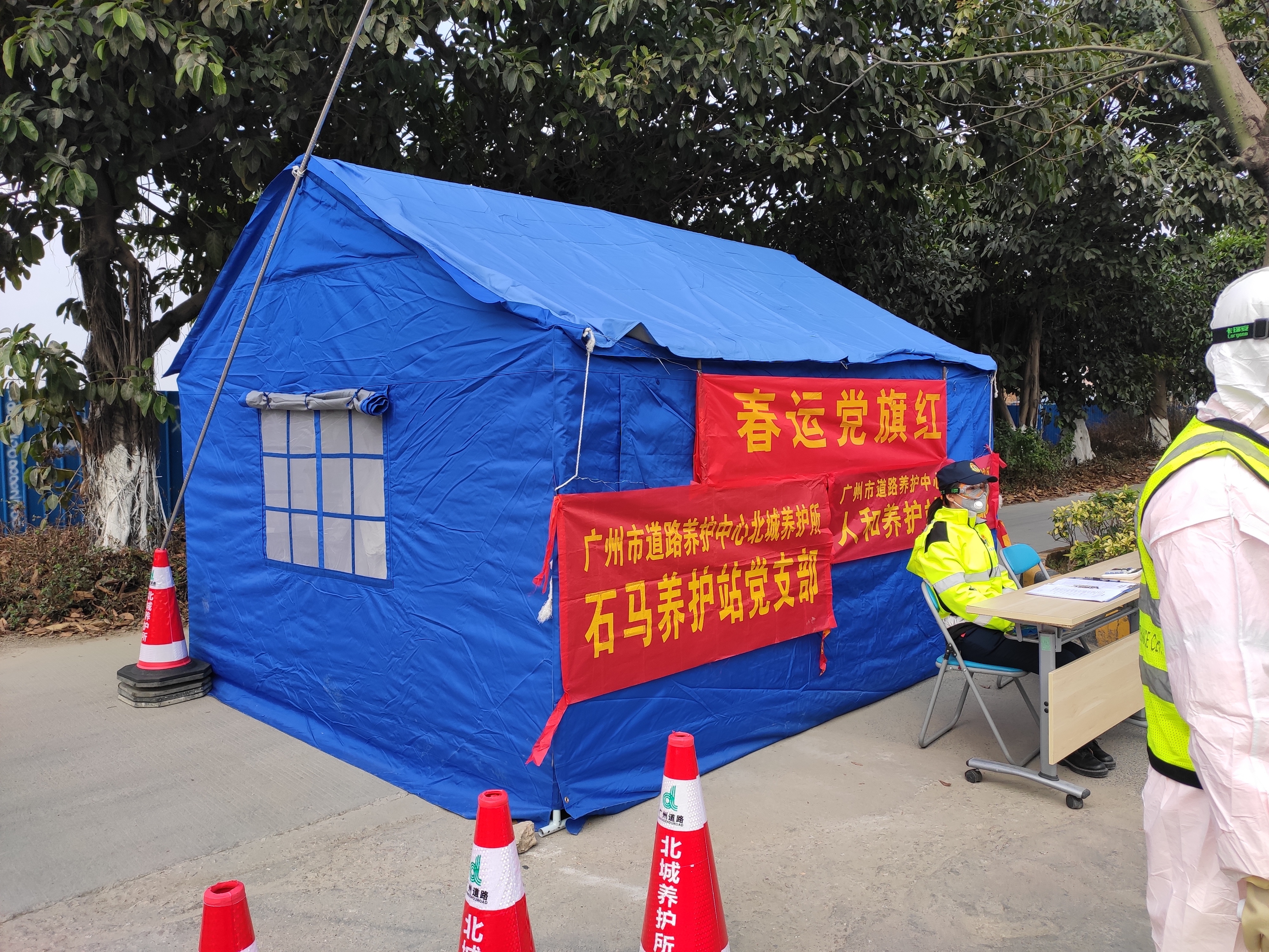 “进城车流明显增多,很多工作人员一站就是6个小时,为了不上厕所,大家都尽量不喝水。”党员董传海最近从广州市道路养护中心北城养护所办公室调岗至国道防疫一线,“我们把党支部建在了国道防疫一线,就是要保证24小时把好进城关。”