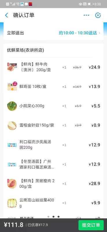据了解,线上配送时间普遍在1-1.5小时左右。不少市民体验“线上买菜”后感叹非常方便快捷,市民李小姐上午8点30分下单购买肉菜、汤圆、饮料等过节食品,上午10点送货上门,肉菜均已经过处理,包装完好。市民还可以选择无接触配送,将肉菜送到家门口、小区门岗等指定的配送位置,减少面对面接触风险。