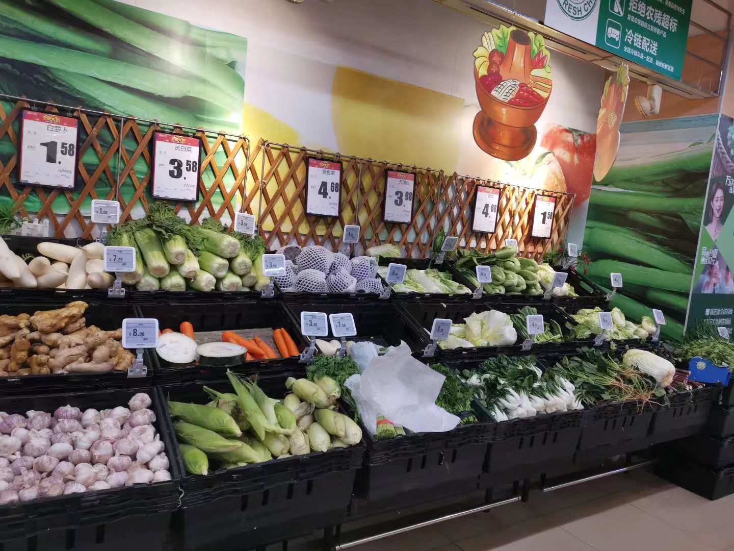 10:30,永旺东方宝泰店,客流量比平时有所增加,市场秩序良好,各类食品供应充足,价格已经平稳回落到春节前水平。