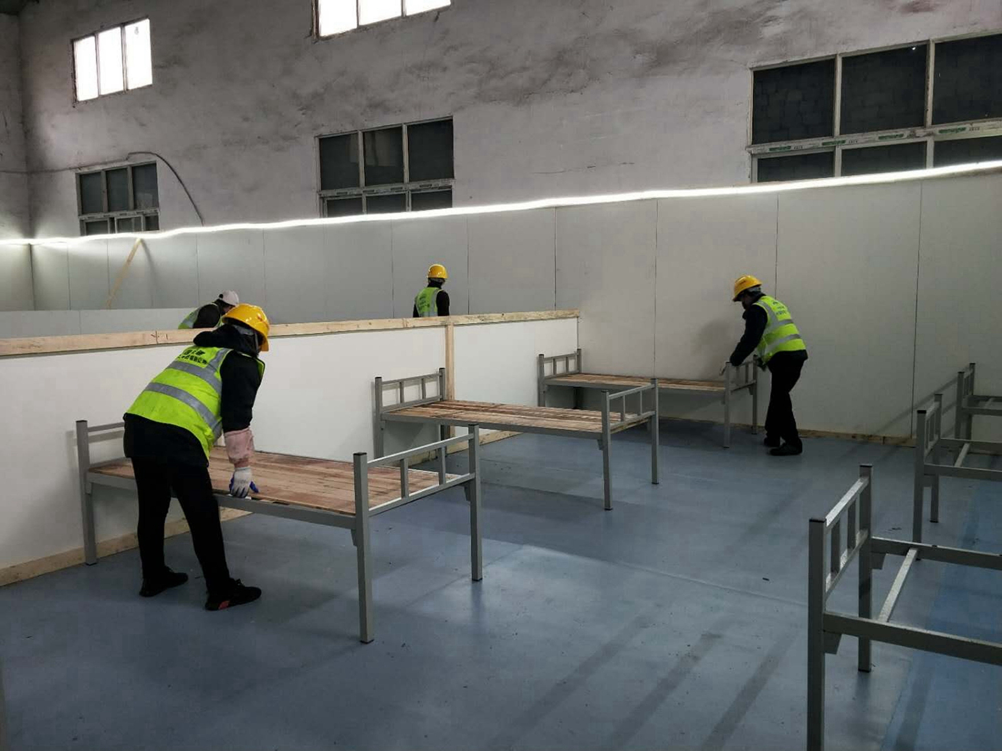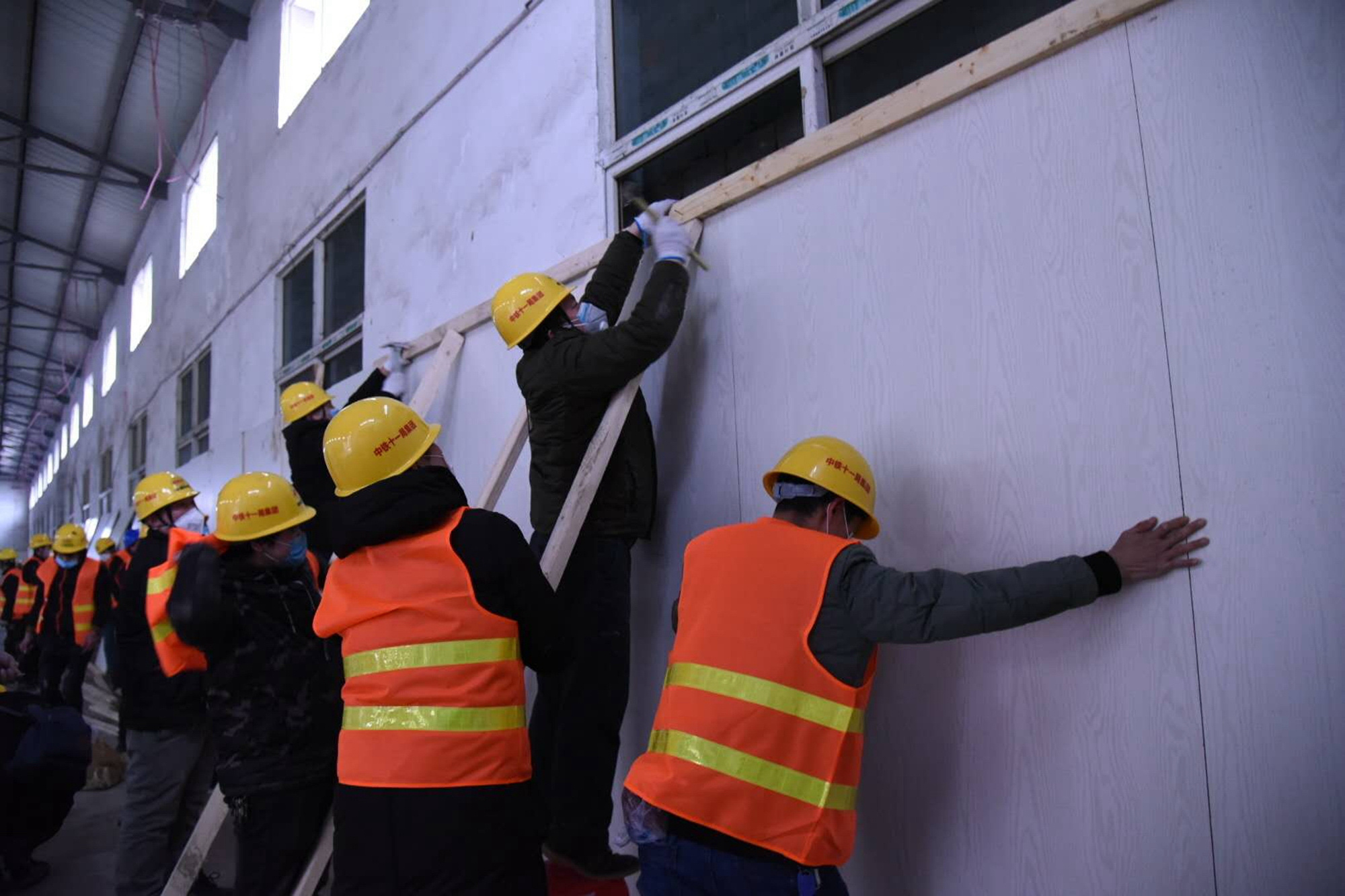 2月15日下午,接到正式的通知后,张焕武立即驱车40多公里,于18:00准时到达武汉江岸区长江新城方舱医院建设工地,向公司领导报到后,立即和先期到达的同事们投入了“战斗”。