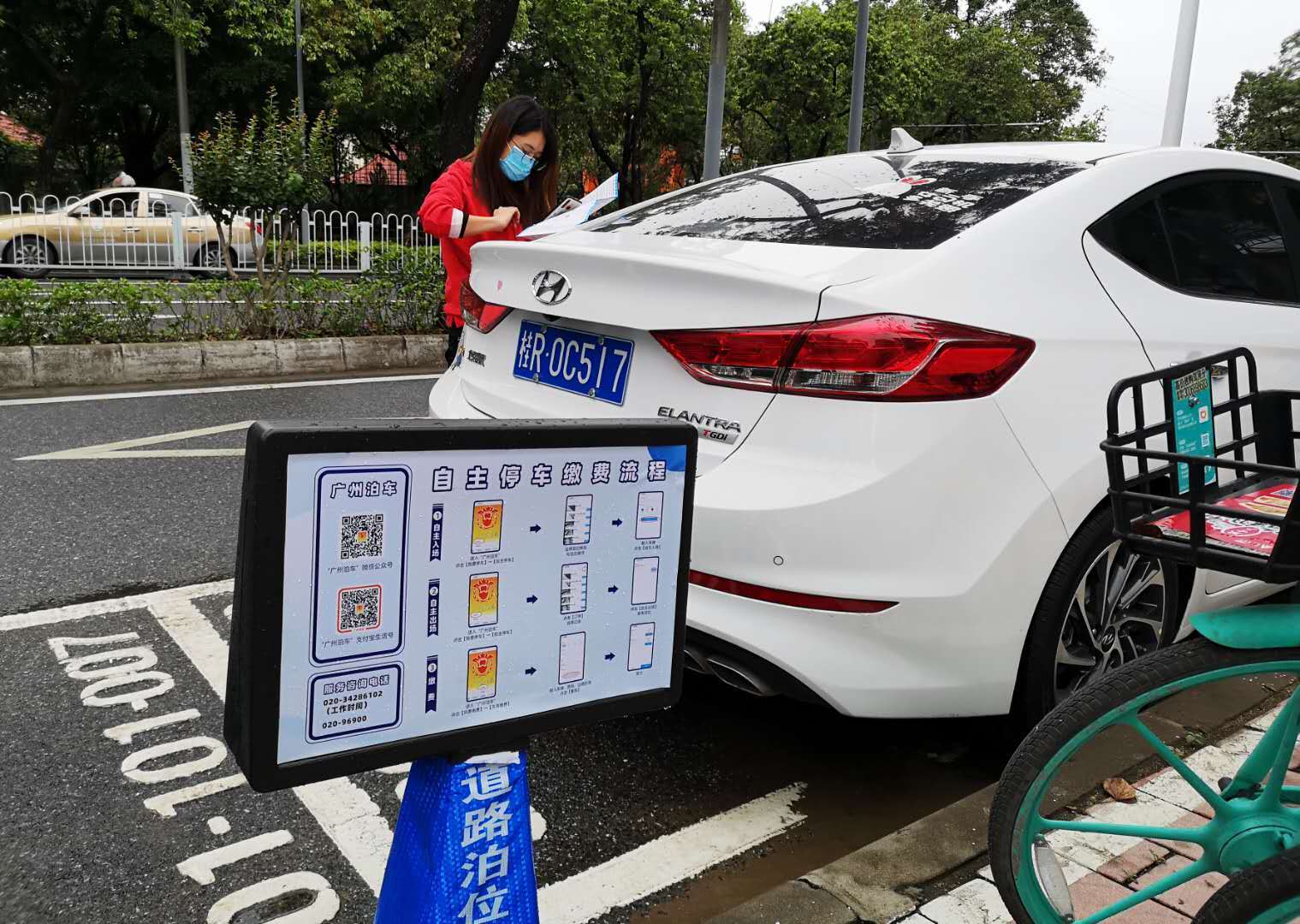 在人民北路的重点区域路段,从黄埔过来的车主陈小姐正在根据“广州泊车”微信公众号或支付宝生活号自主停车流程图,扫码注册、支付车费。对于广州中心城区临时泊位恢复收费,陈小姐表示认同:“停车收费是合理的,目前的收费方式还是可以的。”