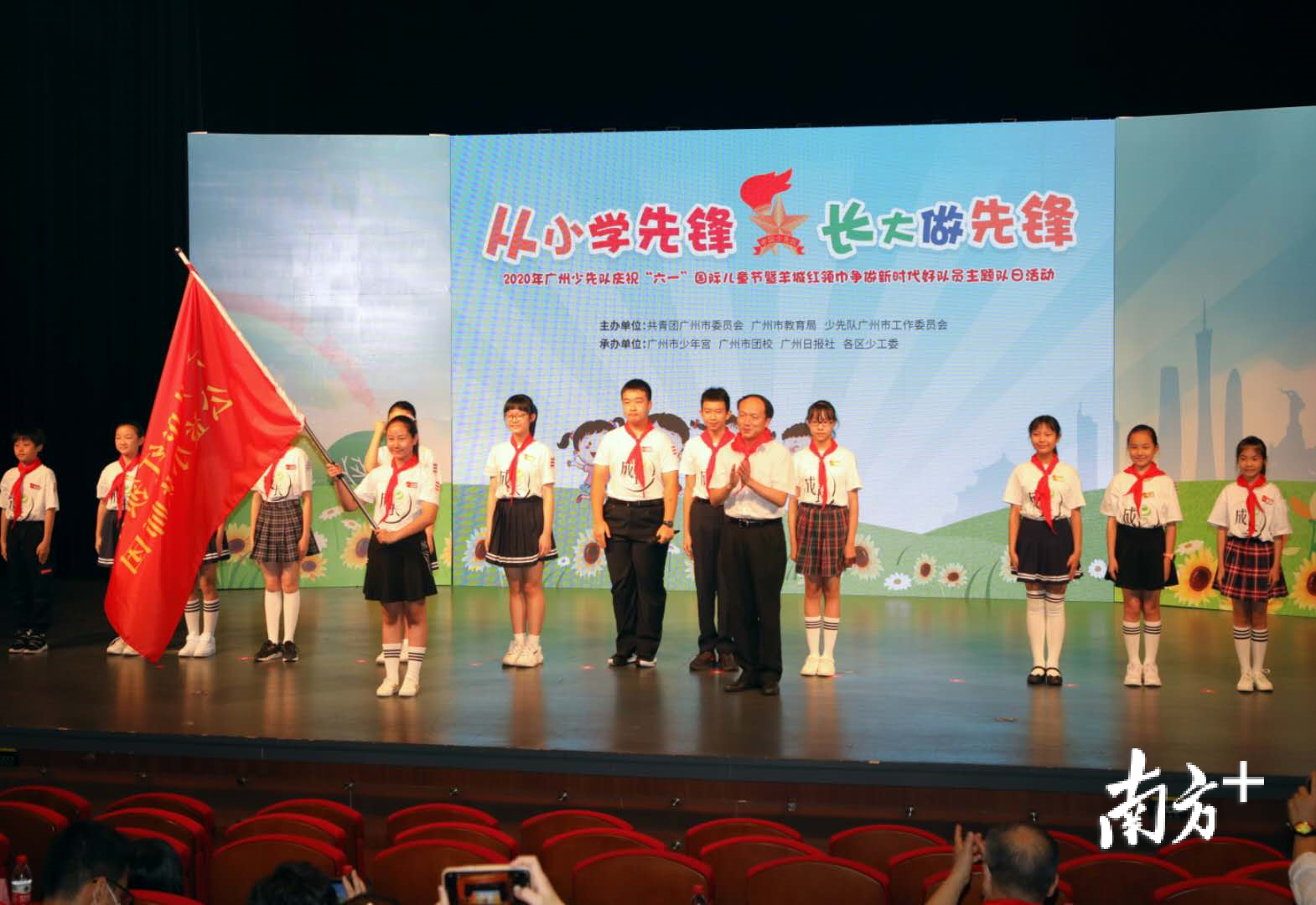 广州市少年宫红领巾E成长小讲师团接受旗帜。