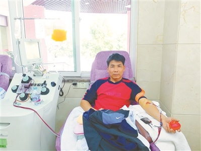 每次献完血小板后,休息20分钟,冯日初就会返回工作岗位,从来不会因为献血而耽误工作。