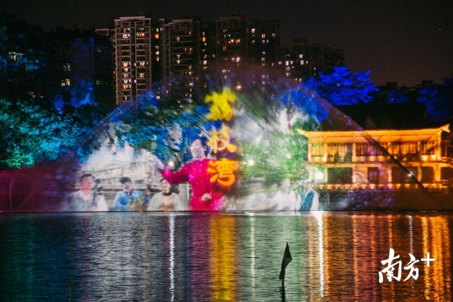 文化,是一种情怀,是一种乡愁。广府文化,韵在西关,广州美食,味出西关,西关风情有道不尽的广府乡愁。水幕上展现的都是荔枝湾的重要符号,龙舟、舞狮和一些熟悉的美食老字号。