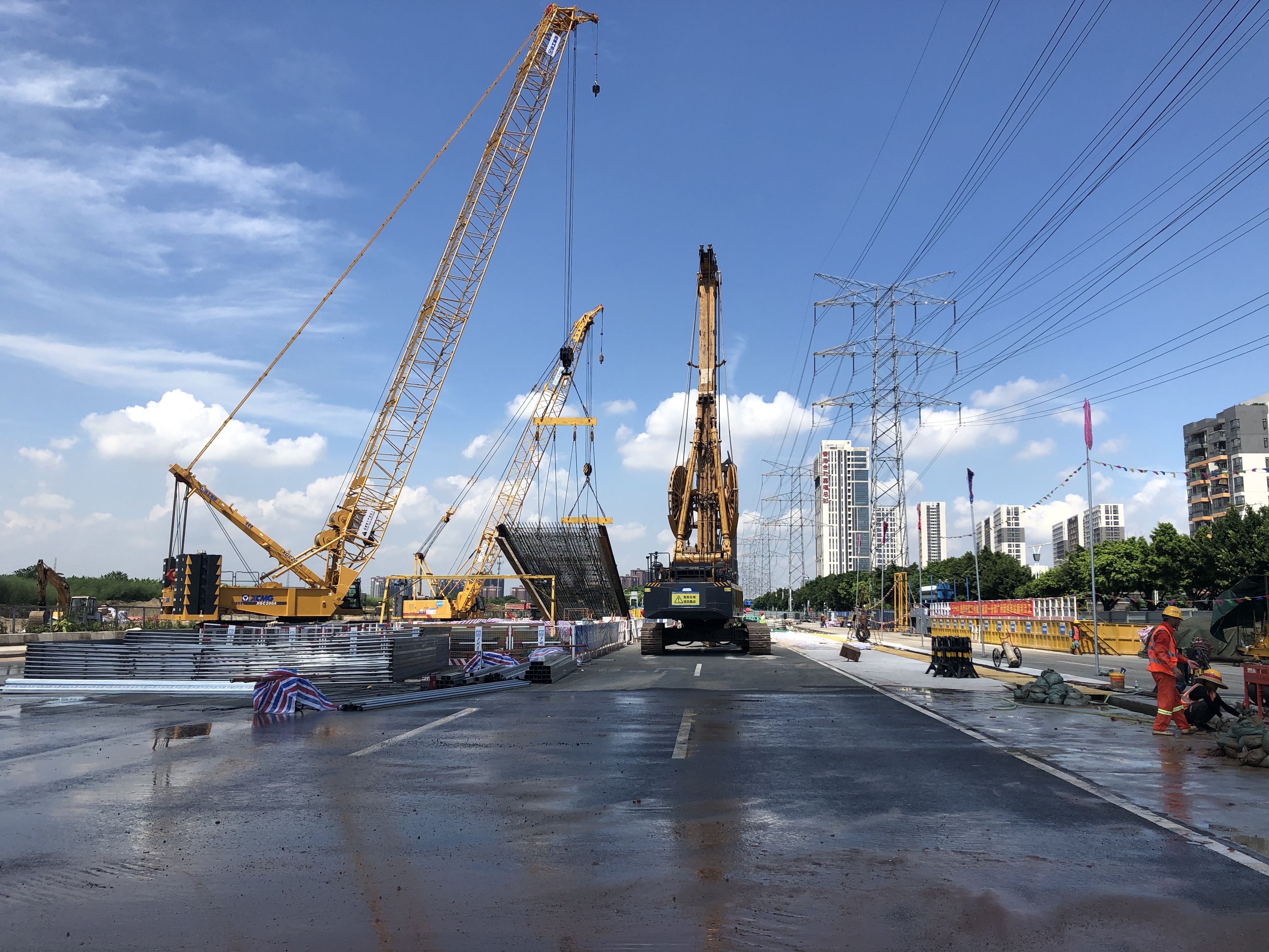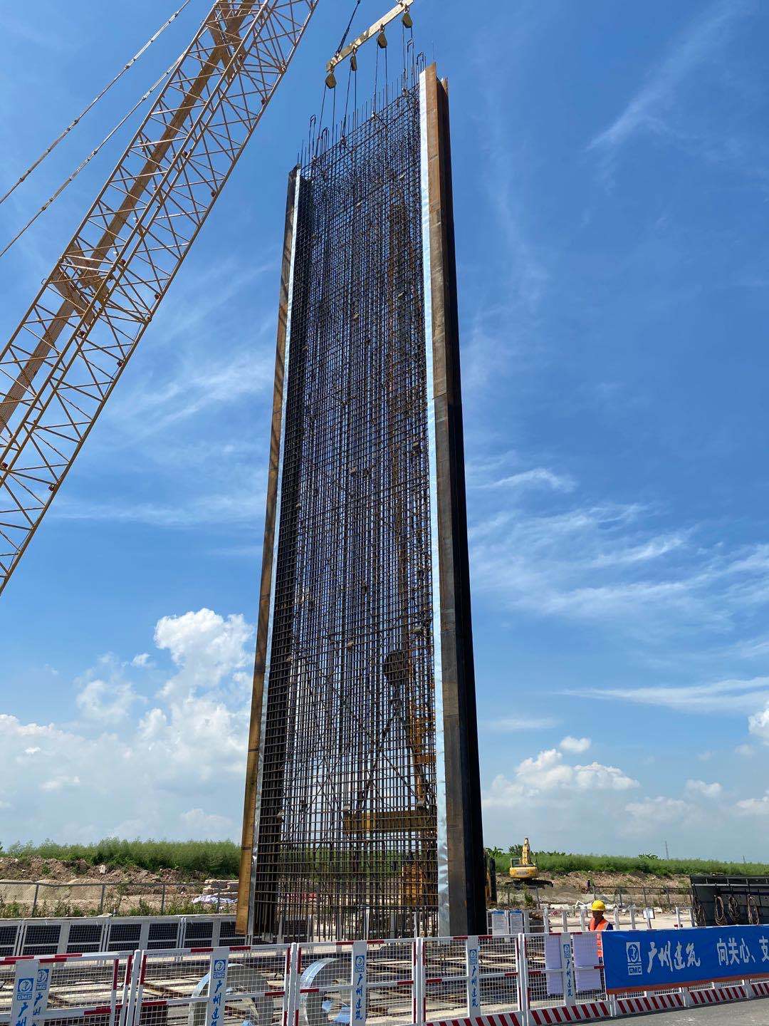 此外,广州新城西站北侧靠近220KV高压电塔,为确保围护结构施工的安全,施工单位广州建筑集团与相关产权单位开展了多次研究论证,最终采用钢筋笼分节吊装,并设置防护墙及限高警戒的方式进行施工,避免了围护结构施工对高压电塔的影响,确保了车站施工的顺利开工。