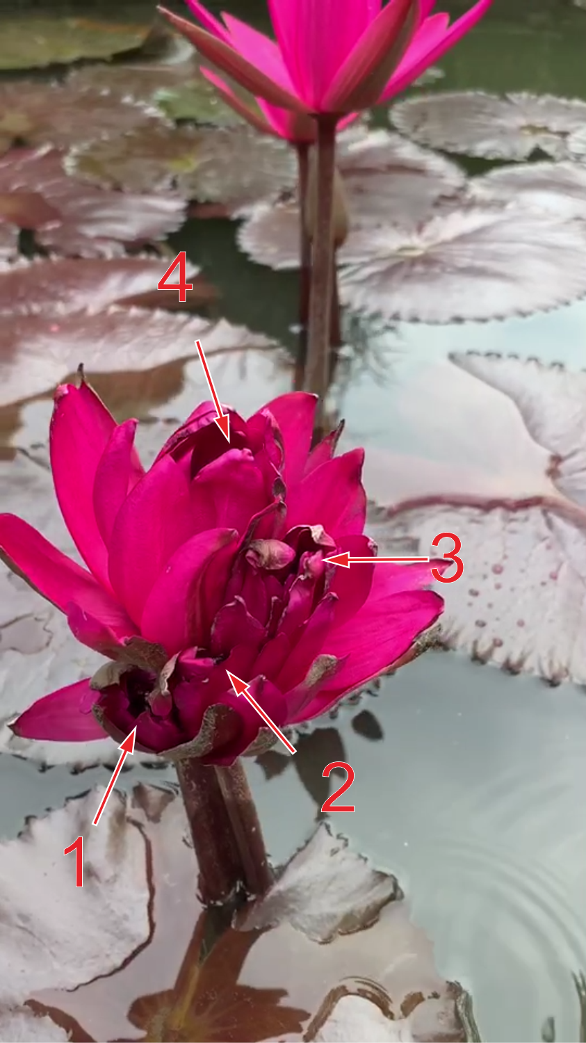 据景区工作人员介绍,这是景区第一次发现四蒂莲。该株四蒂莲的品种名为“红色火焰”,为夜晚开花型热带睡莲,花色鲜艳,花姿俏丽,清晨被发现时,正处于半开半合的状态。在本届全国荷花展展出的1200余个荷花品种、500余个睡莲品种中,夜晚开花型睡莲品种共8个,“红色火焰”是其中一个品种。