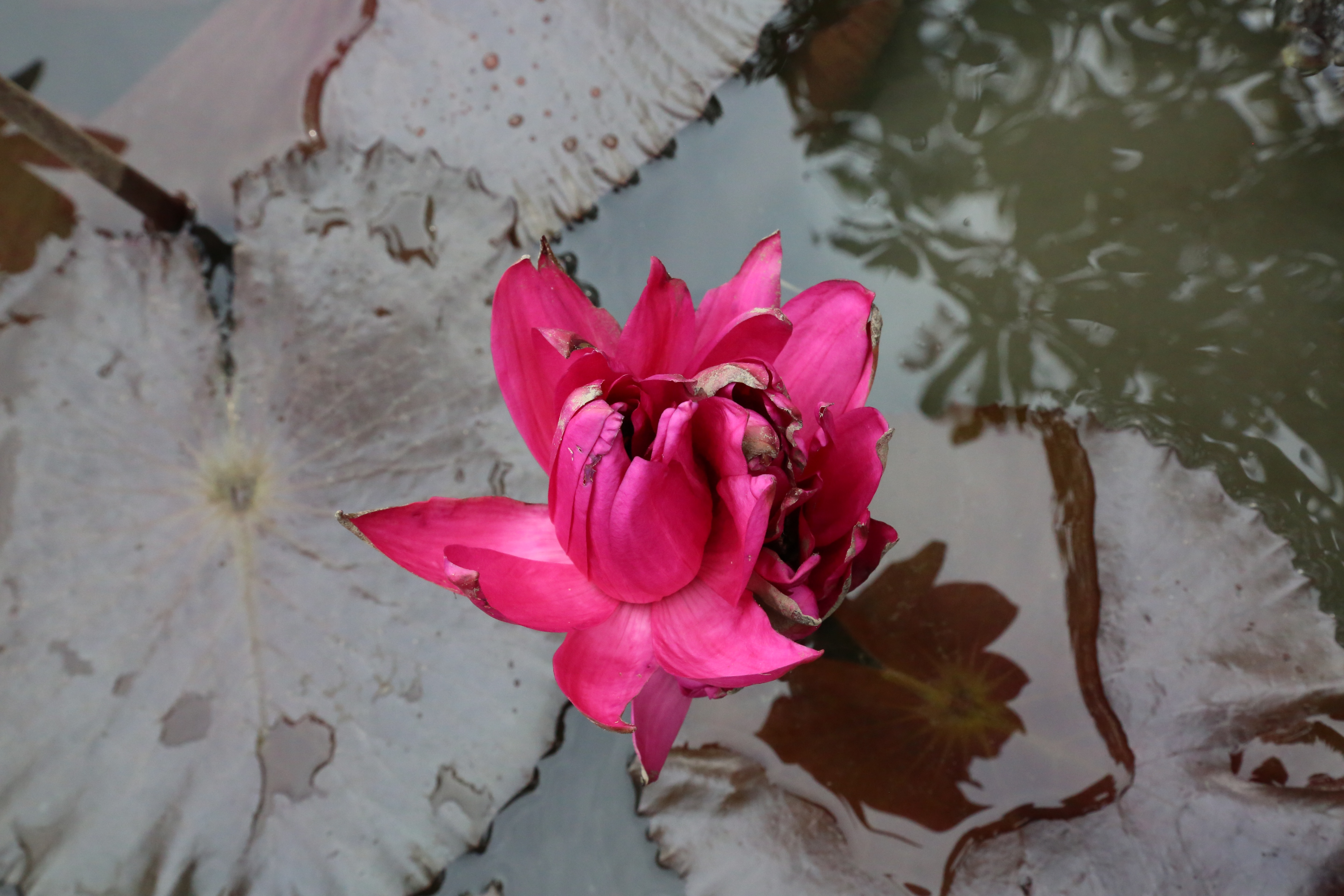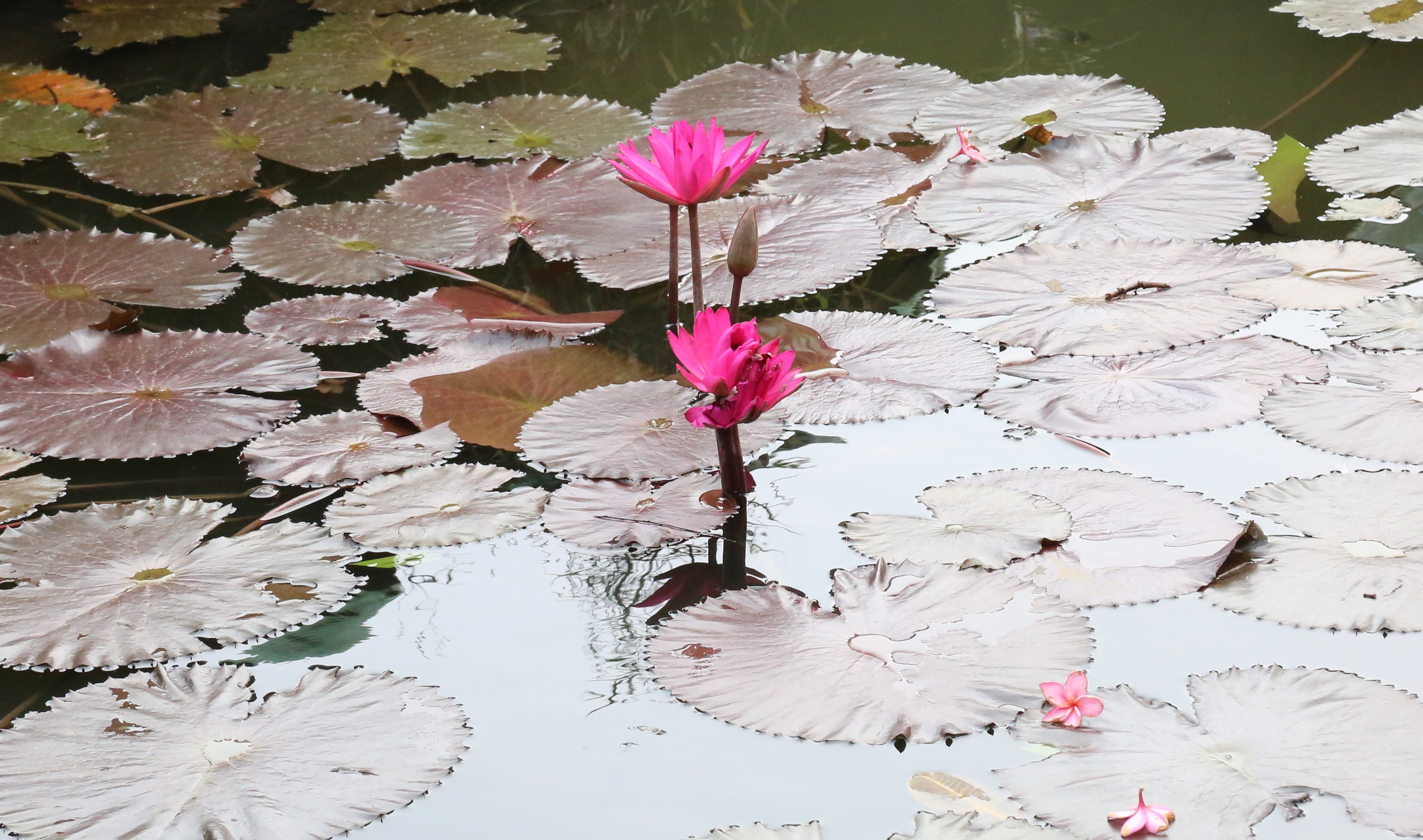该株四蒂莲的品种名为“红色火焰”,为夜晚开花型热带睡莲。
