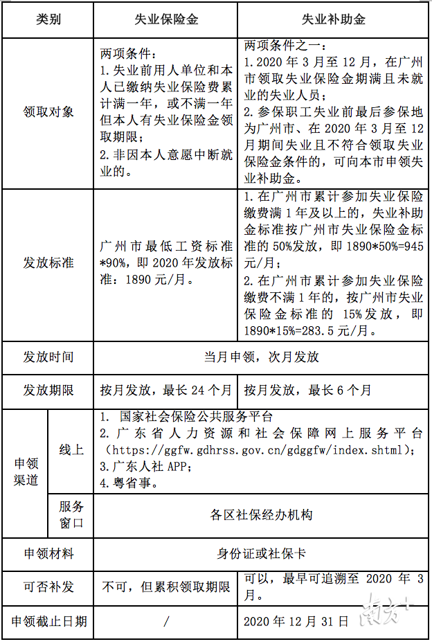 一张表看懂广州失业保险金和失业补助金的区别
