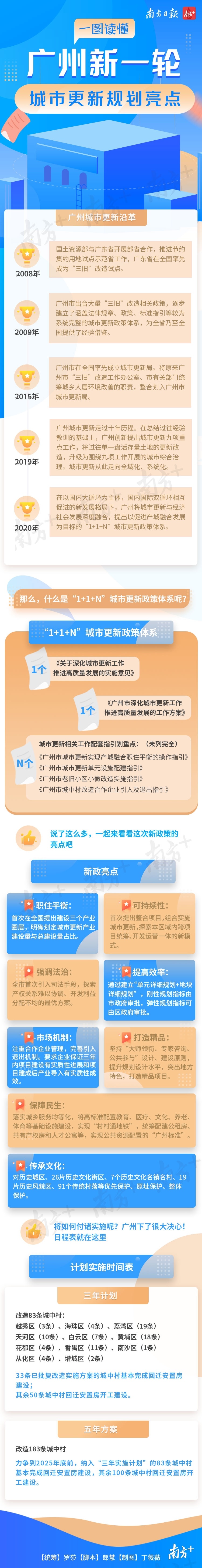 以下,我们通过简图梳理了本轮城市更新的政策亮点,记者从广州市住房和城乡建设局获悉,当前,“1+1+N”城市更新政策“组合拳”已基本确定为“1+1+15”的组合形式。未来,广州还将进一步在实践中完善,奋力实现老城市新活力,“四个出新出彩”,在新经济发展格局中贡献出广州智慧。